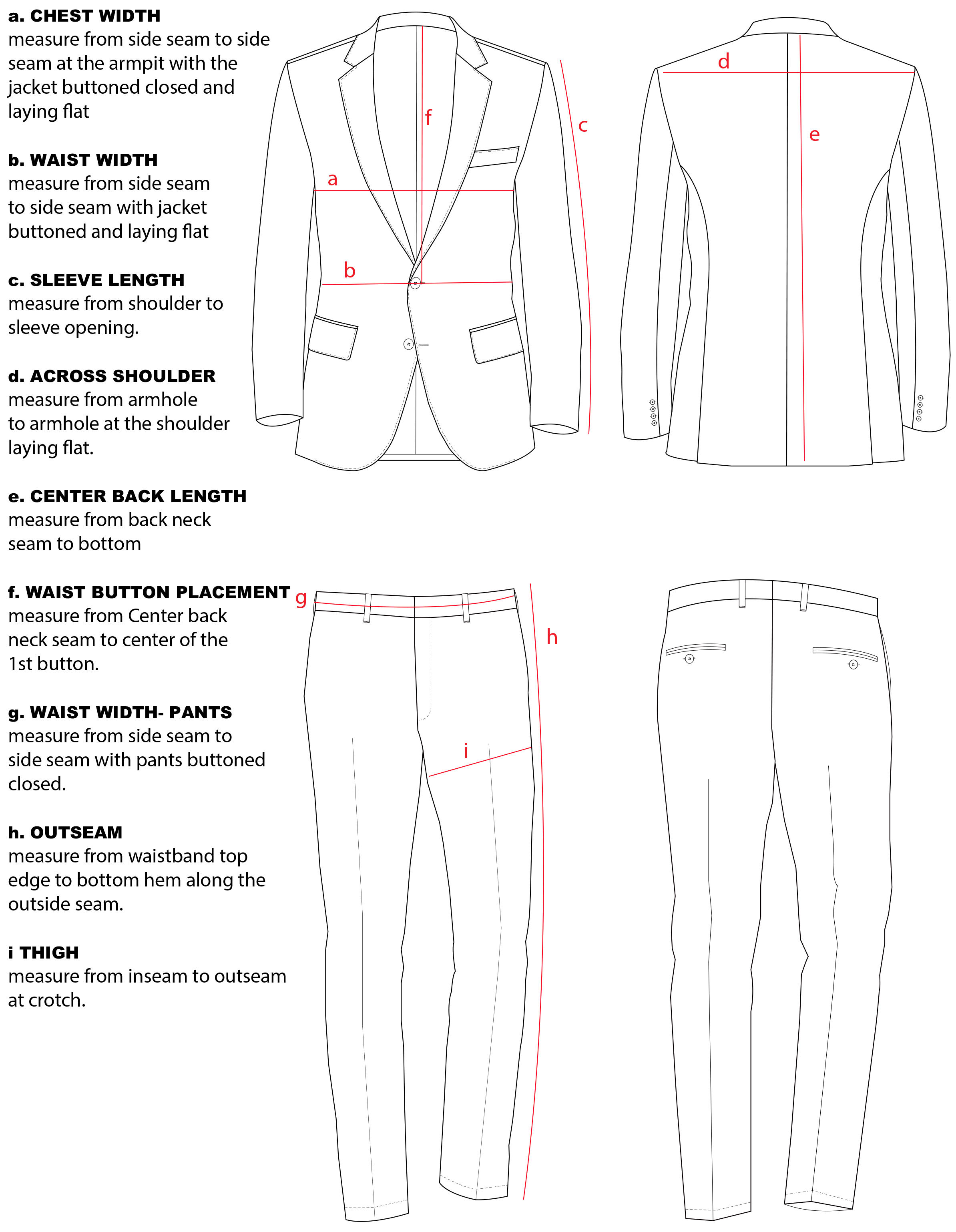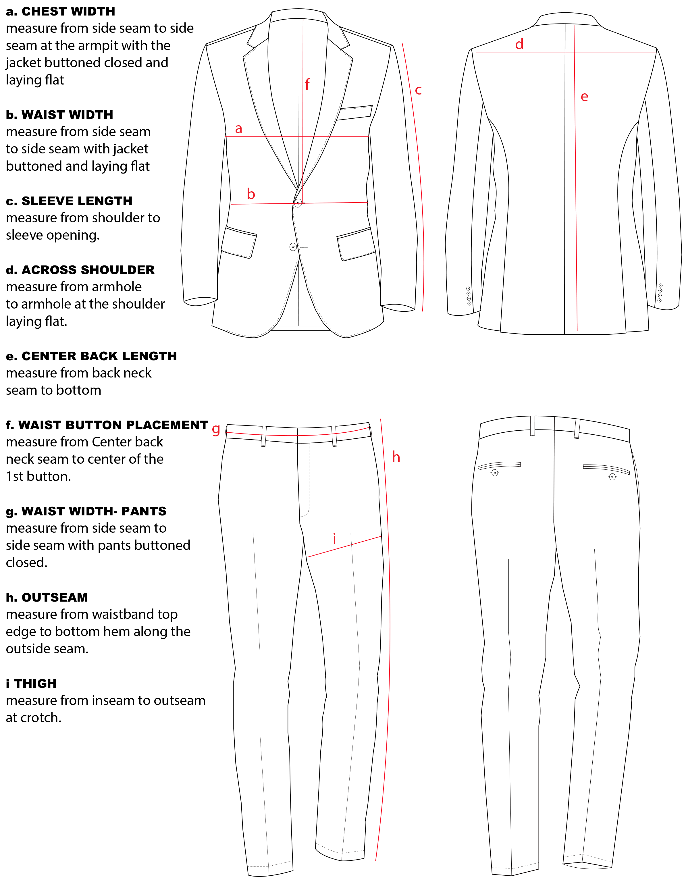If you have a suit you love the fit of and can share a few measurements with me following the document attached, I will be able to make a recommendation for the closest fitting size we offer! Please submit measurements in inches if possible but if cm. is easier we can convert.